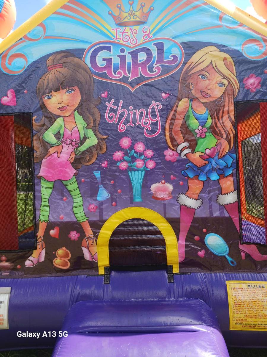Bring some extra fun and charm to your event with the Girl Thing Bounce House. Book it today for your party and watch as the kids bounce and play in excitement! 🎉