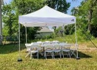 This 10 x 10 tent can provide your party with some protection from the elements. Florida weather can be unpredictable. We can help your party keep cool and dry under one of our tents.